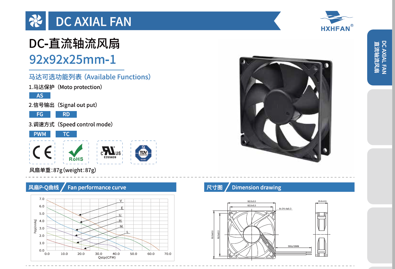 | Part NO. | Function | System | VDC | VDC | A | W | RPM | M3/min | CFM | mmH2O | INH2O | dBA |