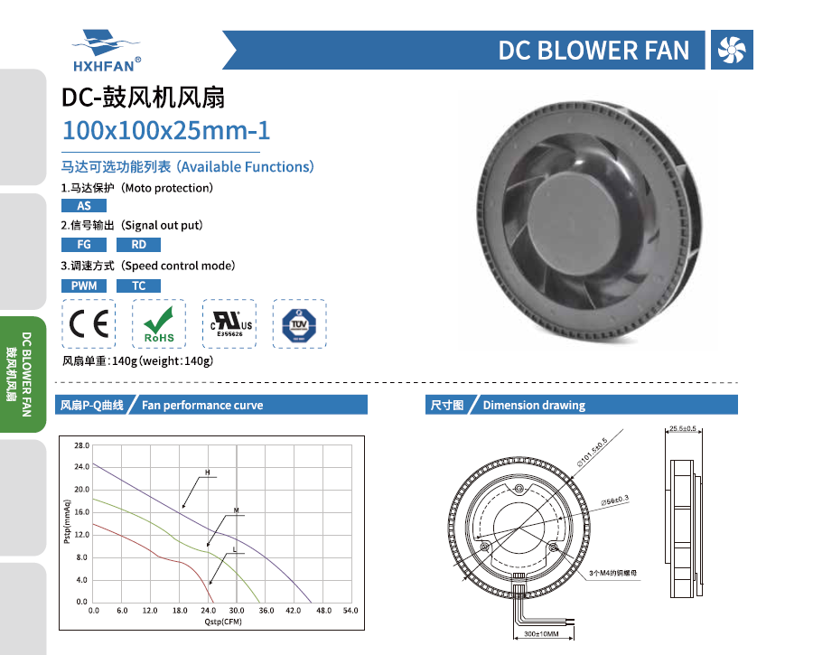 | Part NO. | Function | System | VDC | VDC | A | W | RPM | M3/min | CFM | mmH2O | INH2O | dBA |