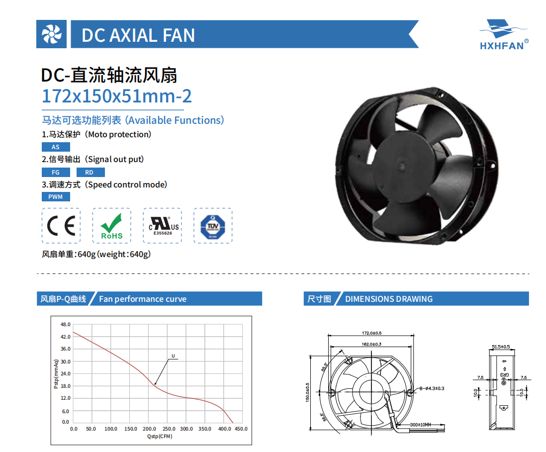 | Part NO. | Function | System | VDC | VDC | A | W | RPM | M3/min | CFM | mmH2O | INH2O | dBA |