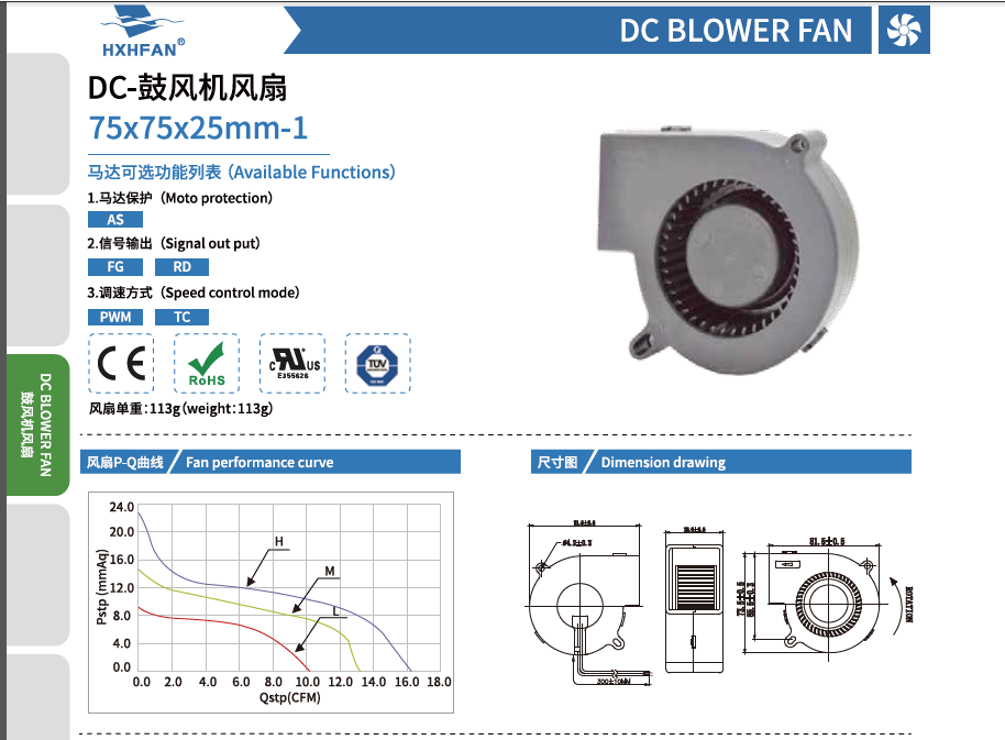 | Part NO. | Function | System | VDC | VDC | A | W | RPM | M3/min | CFM | mmH2O | INH2O | dBA |