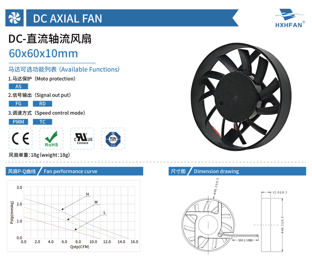 | Part NO. | Function | System | VDC | VDC | A | W | RPM | M3/min | CFM | mmH2O | INH2O | dBA |