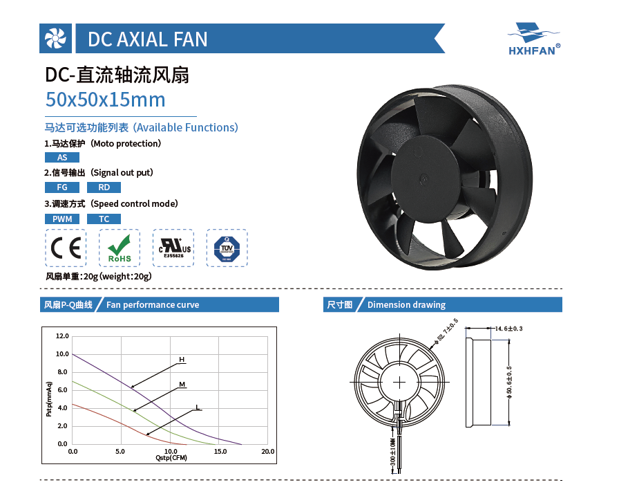 | Part NO. | Function | System | VDC | VDC | A | W | RPM | M3/min | CFM | mmH2O | INH2O | dBA |