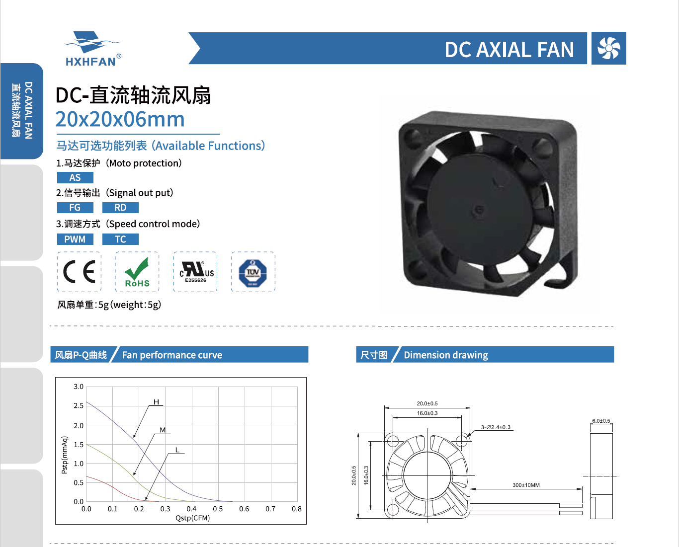 | Part NO. | Function | System | VDC | VDC | A | W | RPM | M3/min | CFM | mmH2O | INH2O | dBA |