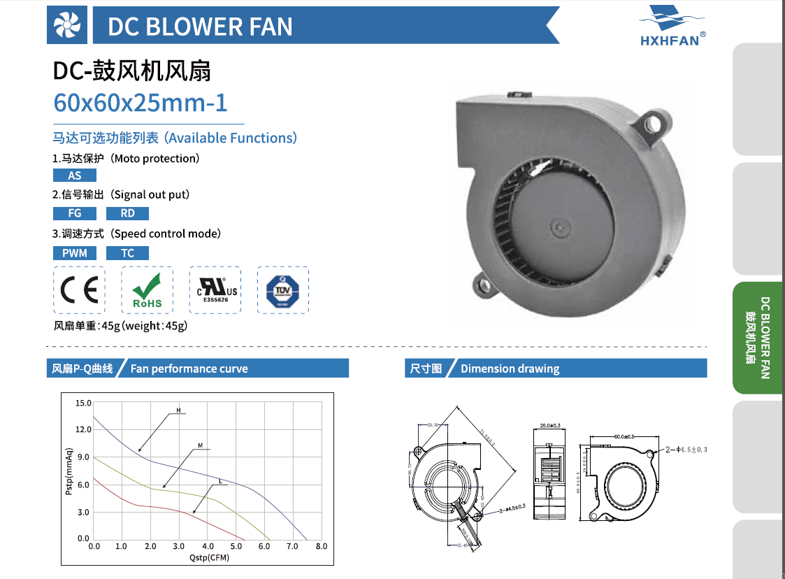 | Part NO. | Function | System | VDC | VDC | A | W | RPM | M3/min | CFM | mmH2O | INH2O | dBA |