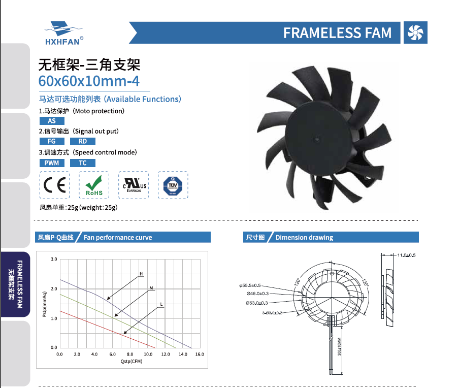 | Part NO. | Function | System | VDC | VDC | A | W | RPM | M3/min | CFM | mmH2O | INH2O | dBA |