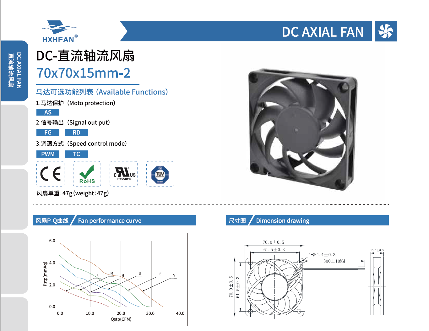 | Part NO. | Function | System | VDC | VDC | A | W | RPM | M3/min | CFM | mmH2O | INH2O | dBA |