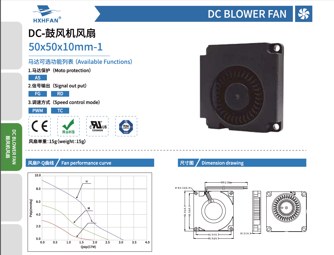 | Part NO. | Function | System | VDC | VDC | A | W | RPM | M3/min | CFM | mmH2O | INH2O | dBA |