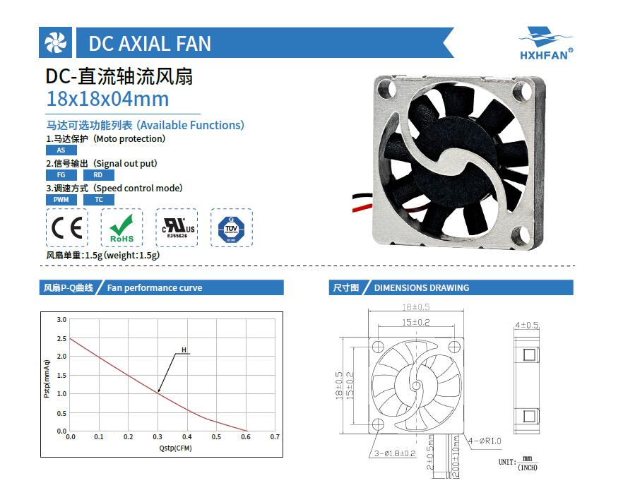 | Part NO. | Function | System | VDC | VDC | A | W | RPM | M3/min | CFM | mmH2O | INH2O | dBA |