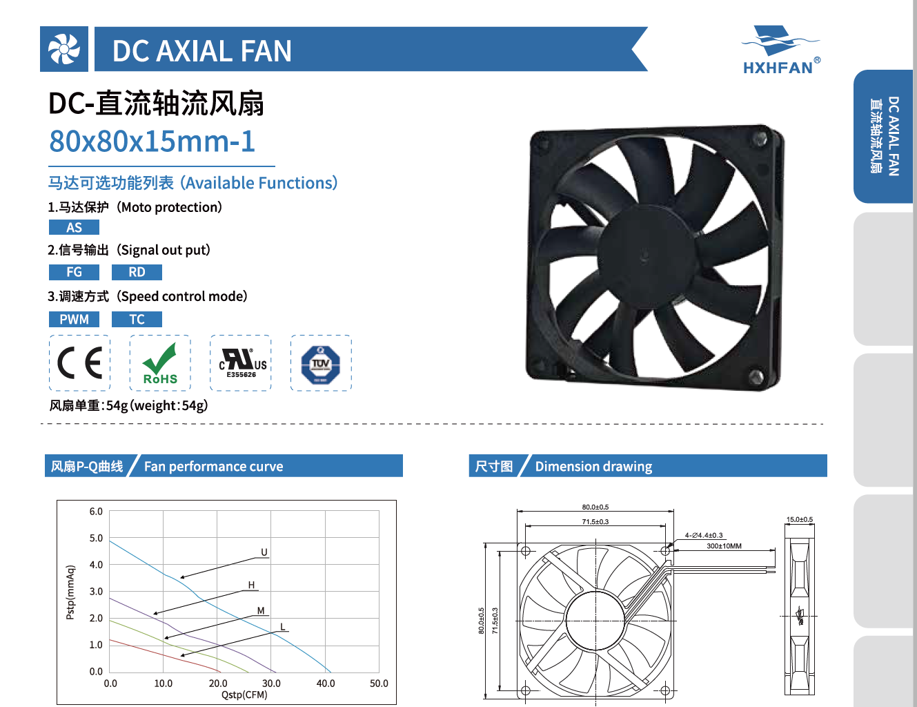 | Part NO. | Function | System | VDC | VDC | A | W | RPM | M3/min | CFM | mmH2O | INH2O | dBA |
