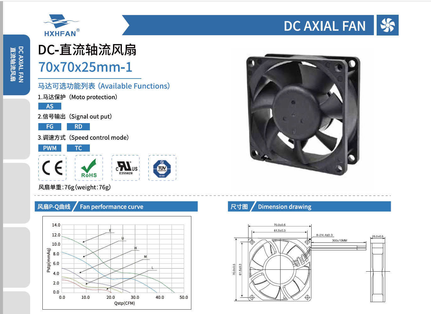 | Part NO. | Function | System | VDC | VDC | A | W | RPM | M3/min | CFM | mmH2O | INH2O | dBA |