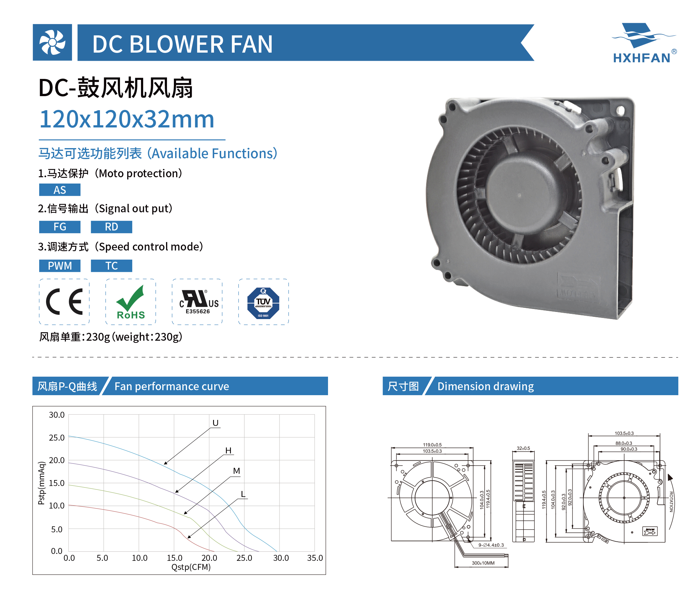 | Part NO. | Function | System | VDC | VDC | A | W | RPM | M3/min | CFM | mmH2O | INH2O | dBA |
