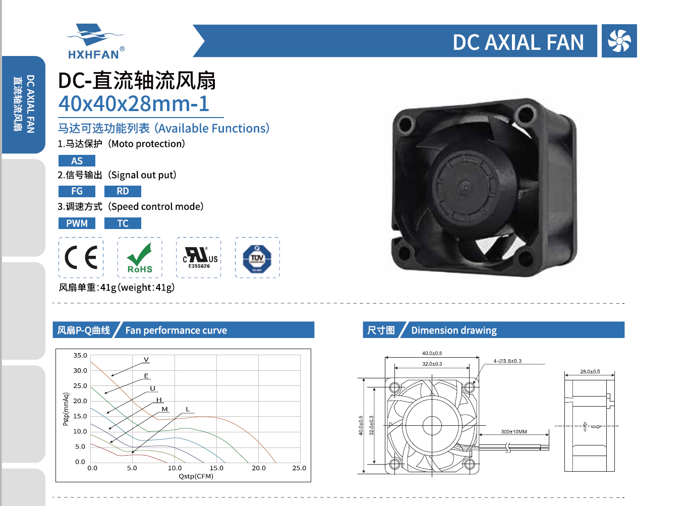 | Part NO. | Function | System | VDC | VDC | A | W | RPM | M3/min | CFM | mmH2O | INH2O | dBA |