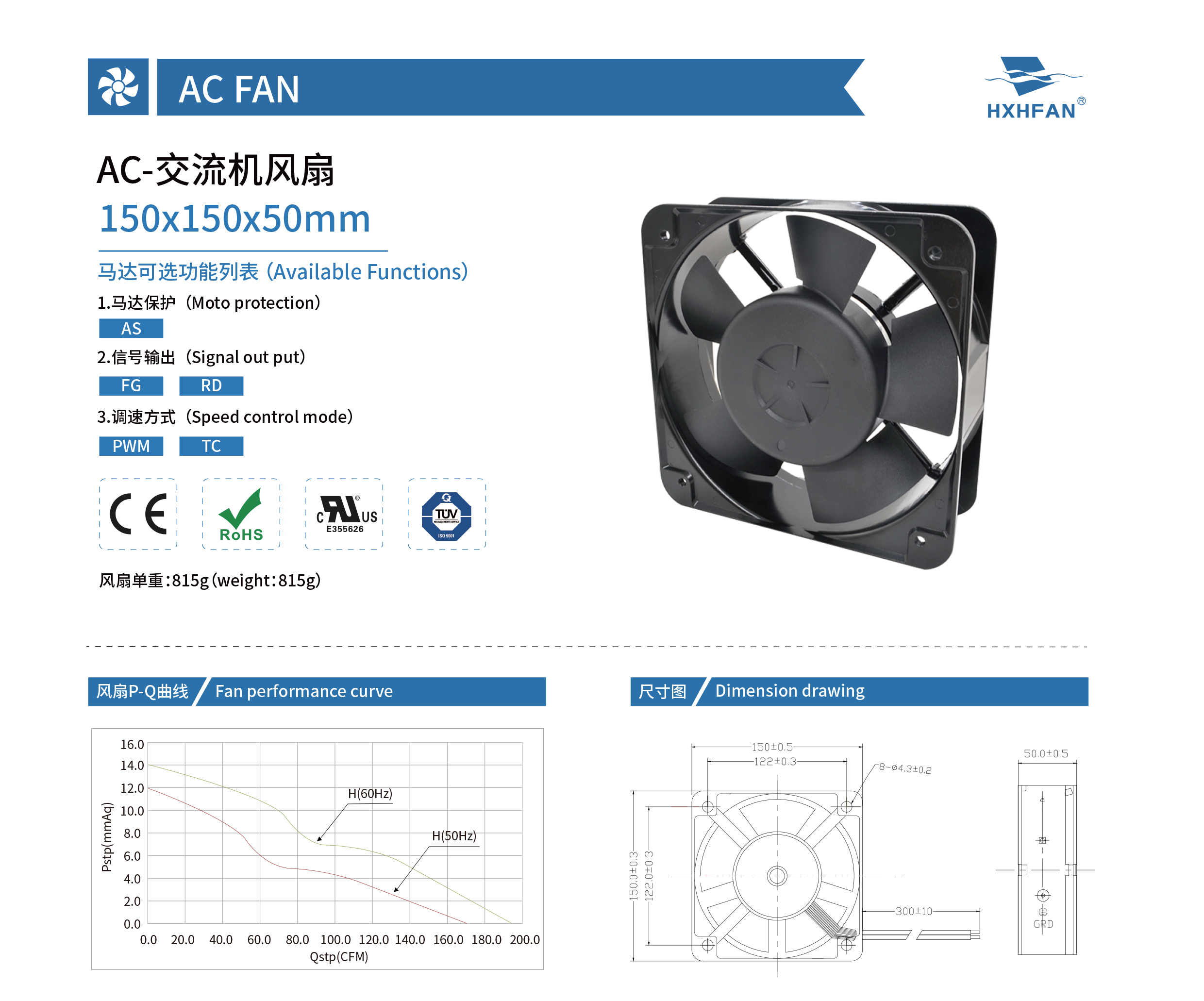 | Model | Bearing | Rated Voltage | Voltage Range | Freq. | Current | Speed | Air Flow | Static Pressure | Noise | |||