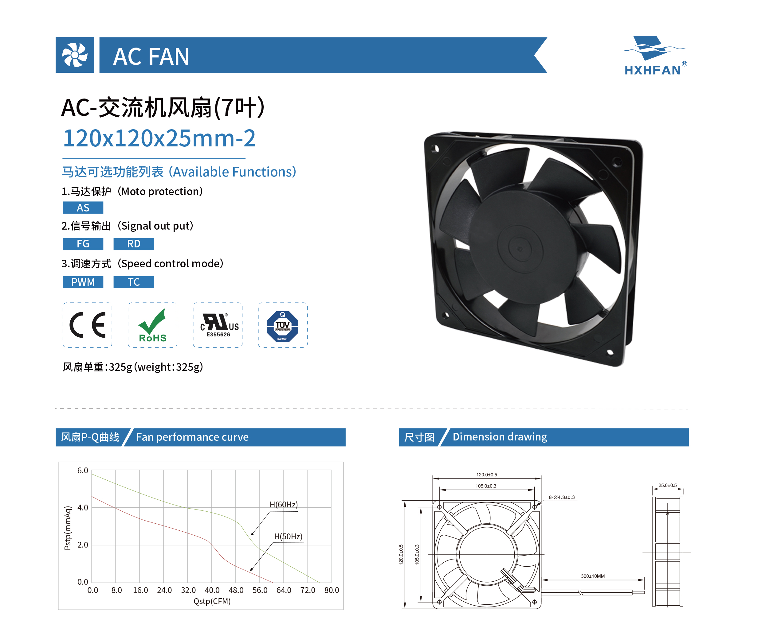 Model Bearing Rated Voltage  Voltage Range Freq. Current Speed Air Flow Static Pressure Noise