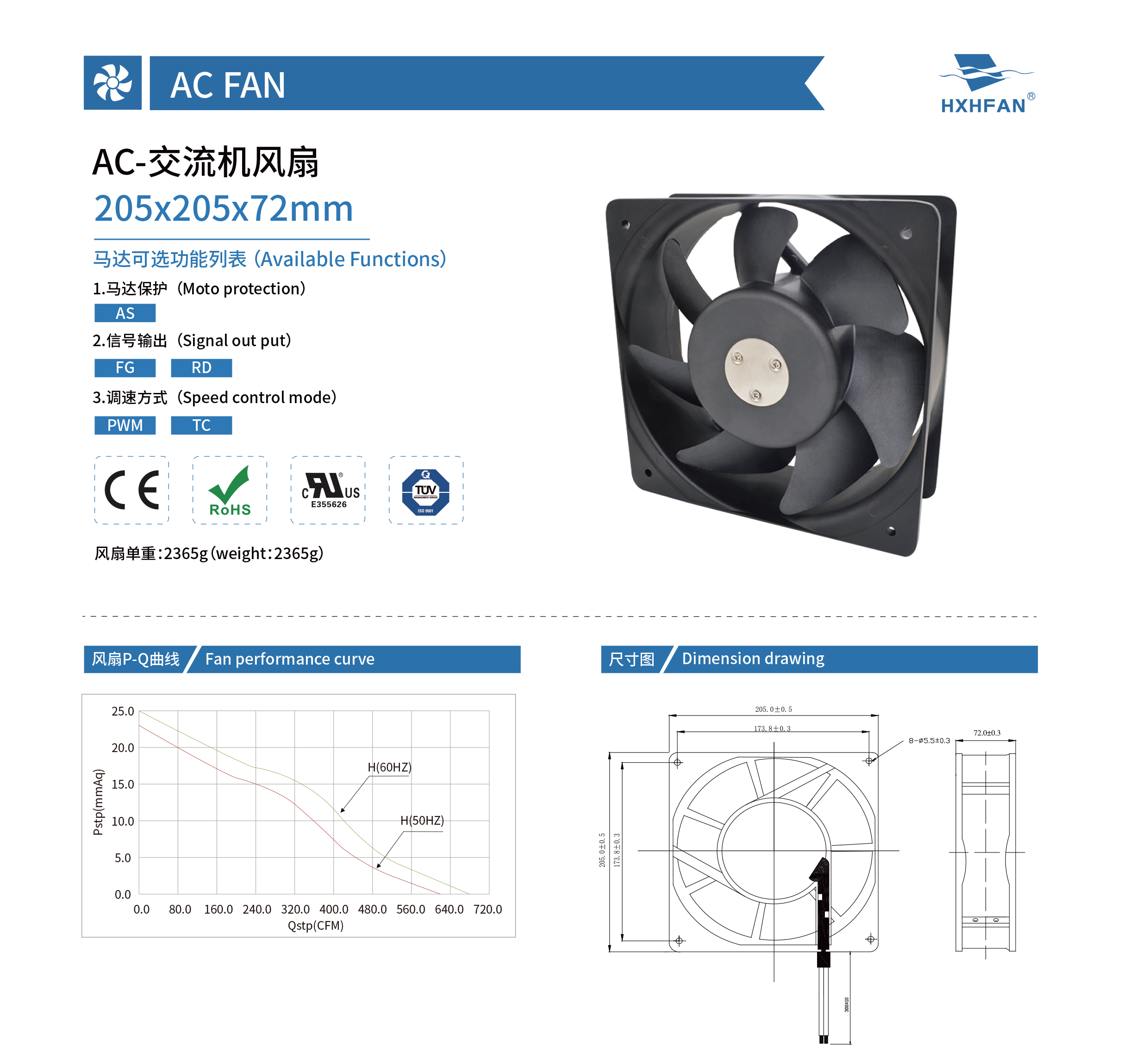 Model Bearing Rated Voltage  Voltage Range Freq. Current Speed Air Flow Static Pressure Noise