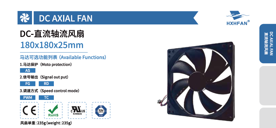 | Part NO. | Function | System | VDC | VDC | A | W | RPM | M3/min | CFM | mmH2O | INH2O | dBA |