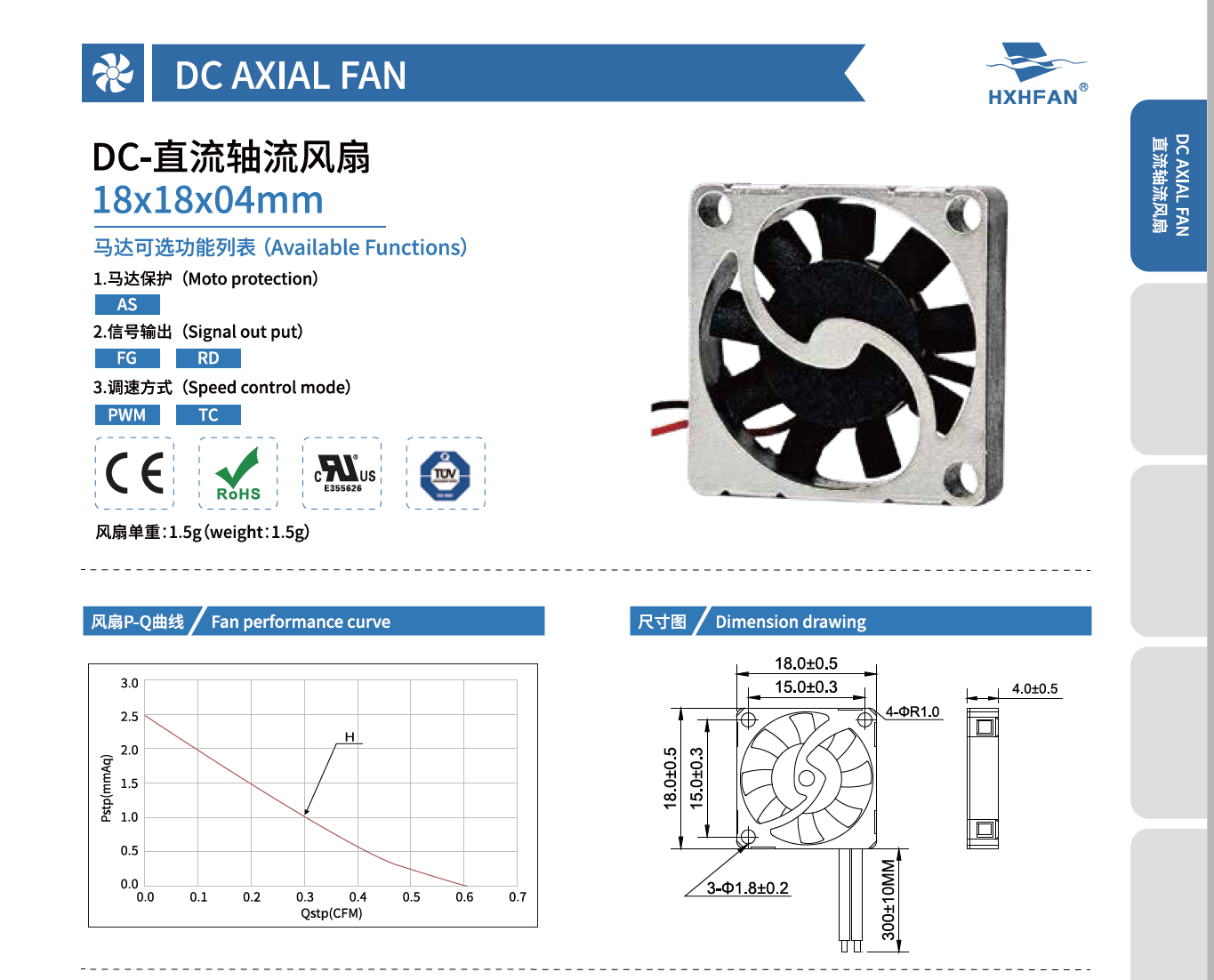 | Part NO. | Function | System | VDC | VDC | A | W | RPM | M3/min | CFM | mmH2O | INH2O | dBA |